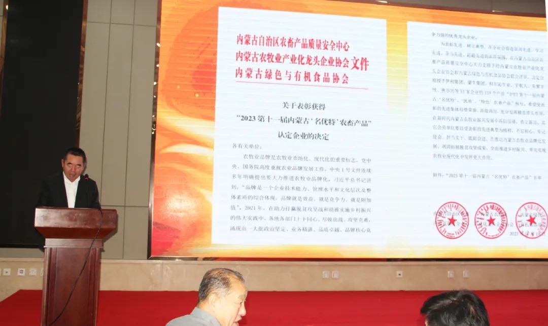 內蒙古農牧業(yè)產(chǎn)業(yè)化龍頭企業(yè)協(xié)會(huì )執行秘書(shū)長(cháng)呼群宣讀表彰決定