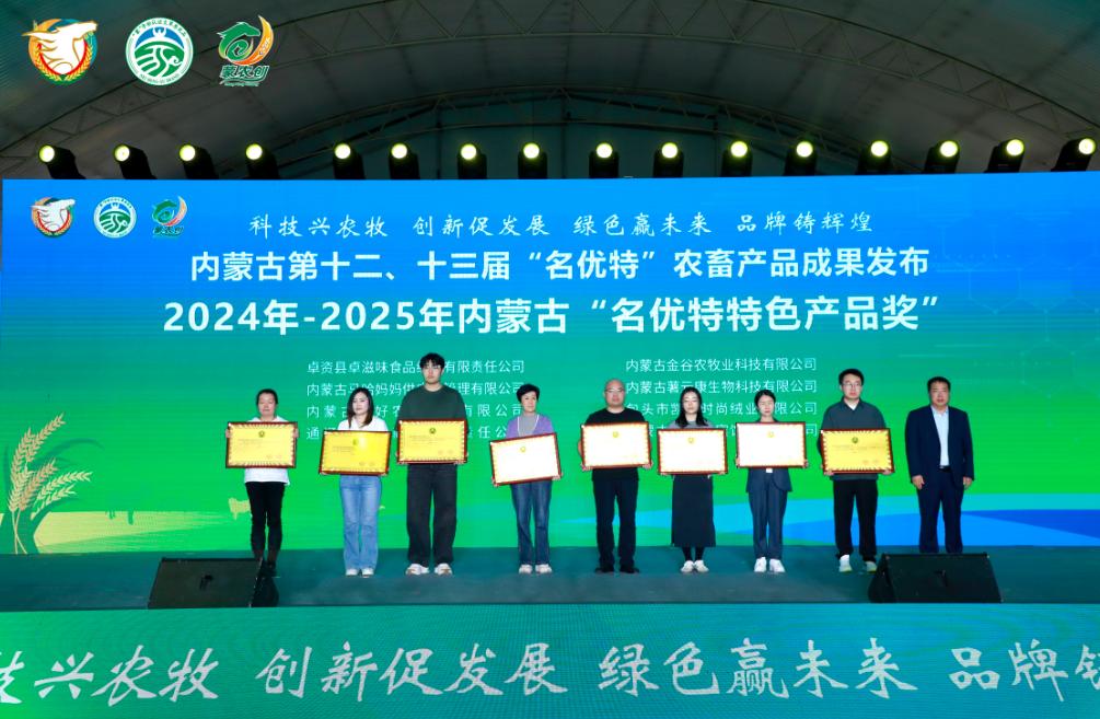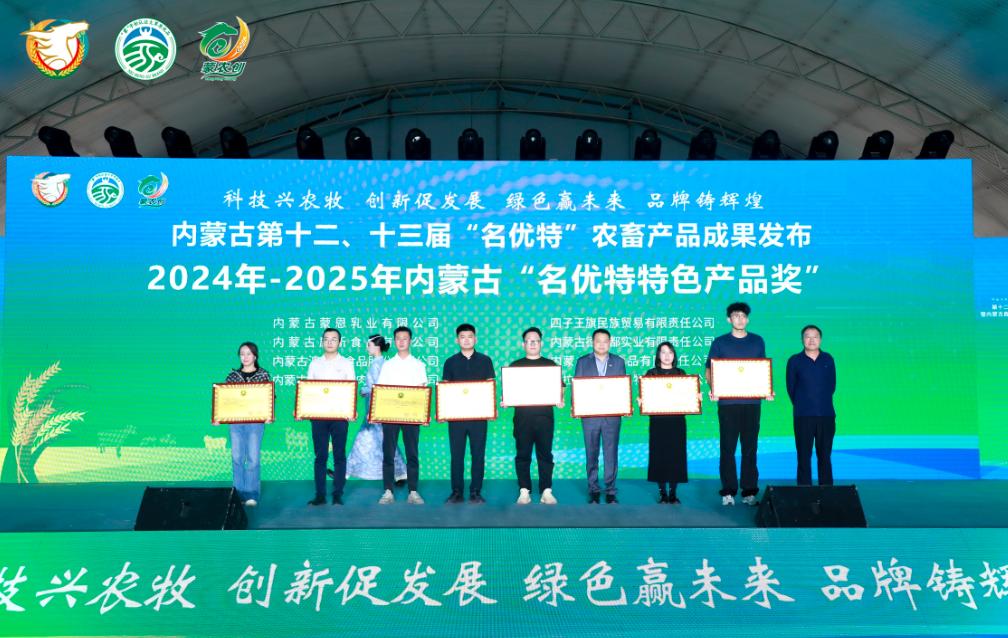 發(fā)布會(huì )上自治區農牧廳二級巡視員侯雁冰、畜牧局局長(cháng)紅海、自治區人民政府駐上海辦事處黨組書(shū)記、主任李志剛、自治區農牧廳鄉村產(chǎn)業(yè)發(fā)展和農墾處處長(cháng)邢瑞、農畜產(chǎn)品質(zhì)量安全中心副主任云巖春、協(xié)會(huì )會(huì )長(cháng)徐建忠、內蒙古綠色與有機食品協(xié)會(huì )常務(wù)副會(huì )長(cháng)、高級顧問(wèn)邢黎明為獲得第十二、十三屆名優(yōu)特認證的企業(yè)頒發(fā)獎牌并合影留念。