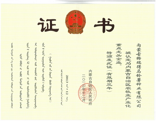 內蒙古格瑞得馬鈴薯種業(yè)有限公司是股份制民營(yíng)企業(yè),成立于2003年,注冊資金5000萬(wàn)元,固定資產(chǎn)1.8億元,公司總部設在內蒙古太仆寺旗生態(tài)農業(yè)科技園區,下設承德大豐馬鈴薯種業(yè)有限公司、內蒙古百斯特農業(yè)科技有限公司、內蒙古爽奇食品有限公司、內蒙古格瑞得西北分公司、內蒙古格瑞得東北分公司、太仆寺旗馬鈴薯研究所,形成一個(gè)擁有‘五個(gè)分公司一個(gè)研究所’的馬鈴薯全產(chǎn)業(yè)鏈的集團化公司。 ...