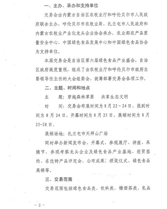 關(guān)于舉辦2013·內蒙古(扎蘭屯)第六屆綠色食品交易會(huì )的通知