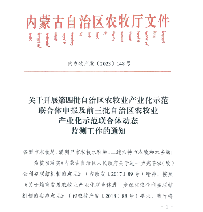 16  關(guān)于召開內(nèi)蒙古農(nóng)牧業(yè)產(chǎn)業(yè)化龍頭企...