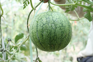 華萊士瓜盛產(chǎn)于內蒙古磴口縣,產(chǎn)區地處烏蘭布和,為黃河沖積平原,土層深厚,土壤肥沃,含大量有機礦物質(zhì);年日照3000小時(shí)以上,氣候干燥,晝夜溫差大;水源泉豐富,年降水量160毫米左右,雖干旱少雨,但黃河穿區而過(guò),灌溉方便。由于這種特質(zhì)的生長(cháng)環(huán)境,使得華萊士瓜具有獨特的品質(zhì)特性:皮色鮮艷、皮薄肉細、光滑潔潤、甜之如蜜、汗液適可、軟脆適度,具有蜜桃、蘋(píng)果、荔枝、香蕉、芒果等多種味道,香氣濃郁、營(yíng)養豐富、香甜爽口,被譽(yù)為“瓜中仙品”。