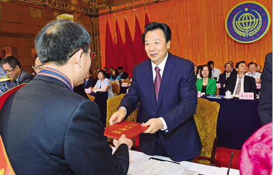 5月29日上午,自治區黨委書(shū)記王君在自治區科協(xié)第七次代表大會(huì )上,為榮獲“第九屆內蒙古自治區青年科技獎”和“首屆內蒙古自治區科技標兵”稱(chēng)號的代表頒獎。記者袁永紅攝